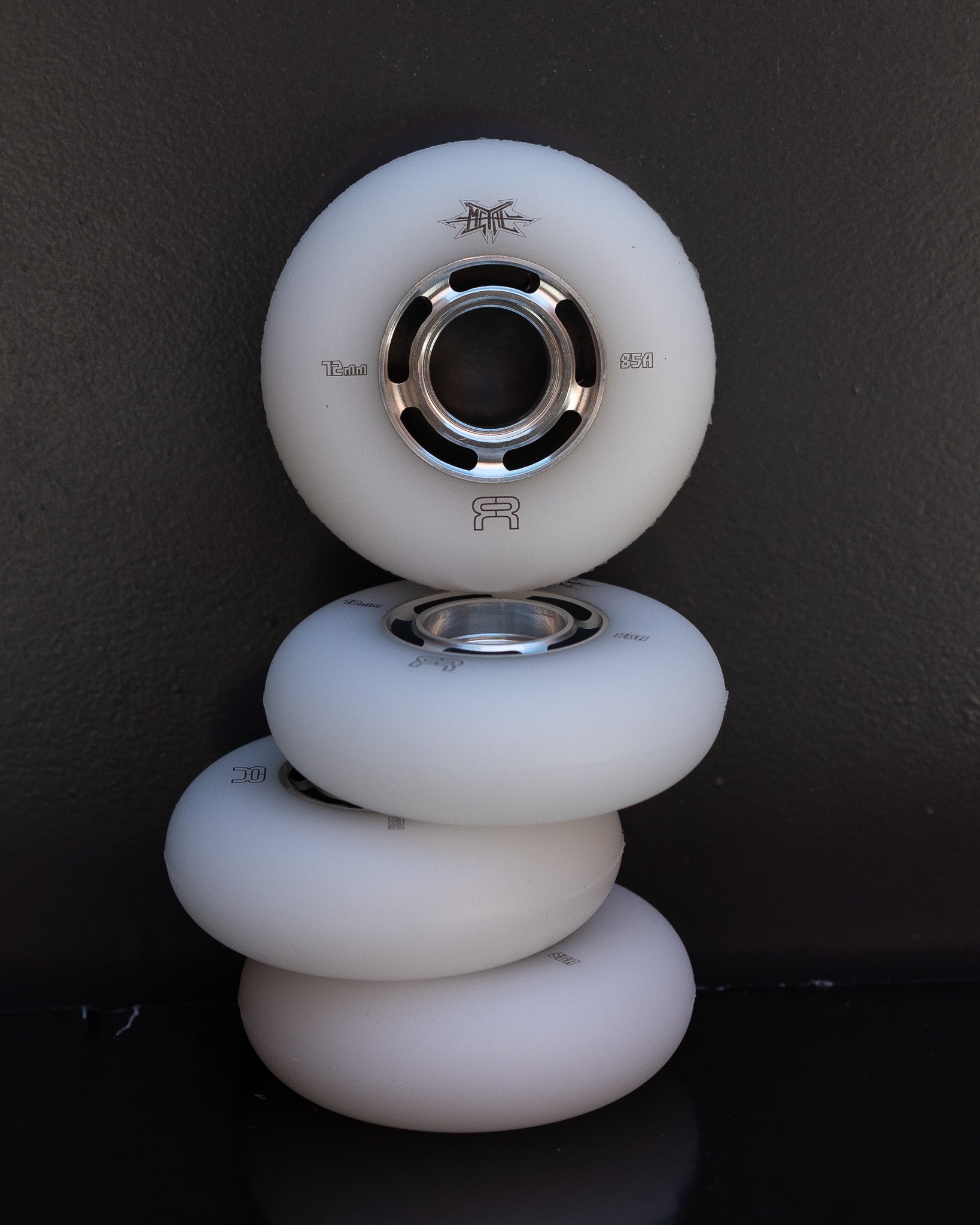 The FR Metal Wheels for Inline Skates are built to be stronger than any other wheel, with a solid aluminum core that increases stability and precision. FReestyle skaters will enjoy the extra rigidity for toe and heel rolls, while Freeride skaters can rely on the core's superior shock resistance. For optimal performance, pair them with FR MW9 bearings and 10.10mm spacers.